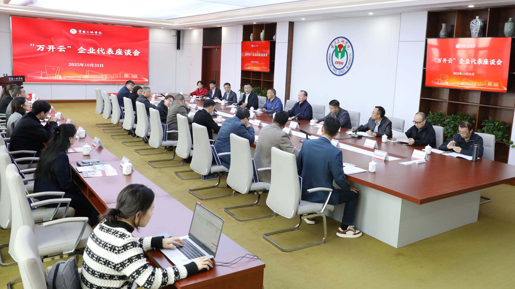 10月31日,我校召开“万开云”企业代表座谈会。党委书记许光洪出席会议并讲话,学校对外合作与交流处、科研处、招生就业处、相关二级学院负责人,重庆华创智能装备、中科创世纪新材料、重庆开州印务等“万开云”区域20余家工业企业代表参会。党委常委、副校长聂祥飞主持会议。